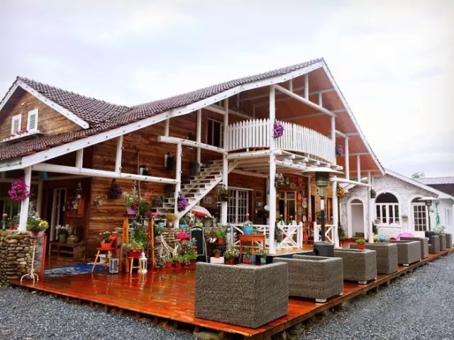 朋友们相聚相识的地方。另外四栋则是独立客房木屋,尖塔的木屋内有复式的小阁楼,
