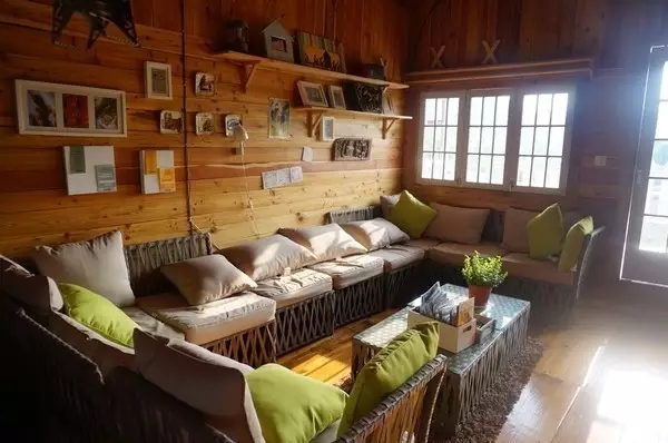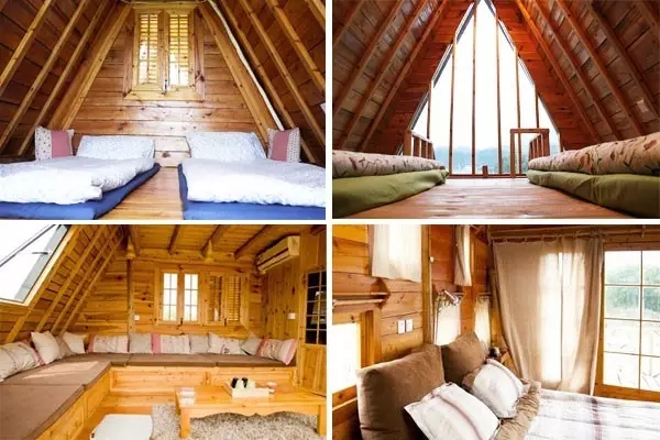 朋友们相聚相识的地方。另外四栋则是独立客房木屋,尖塔的木屋内有复式的小阁楼,
