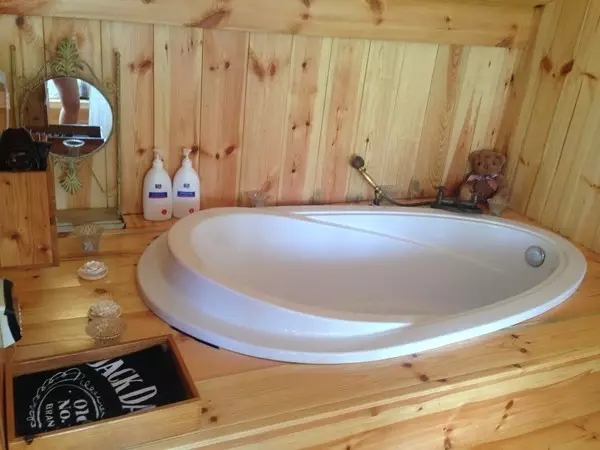 可以探星的天窗和复古的瓷白浴缸;而外形像是谷仓的圆形木屋则拥有最大的活动空间,